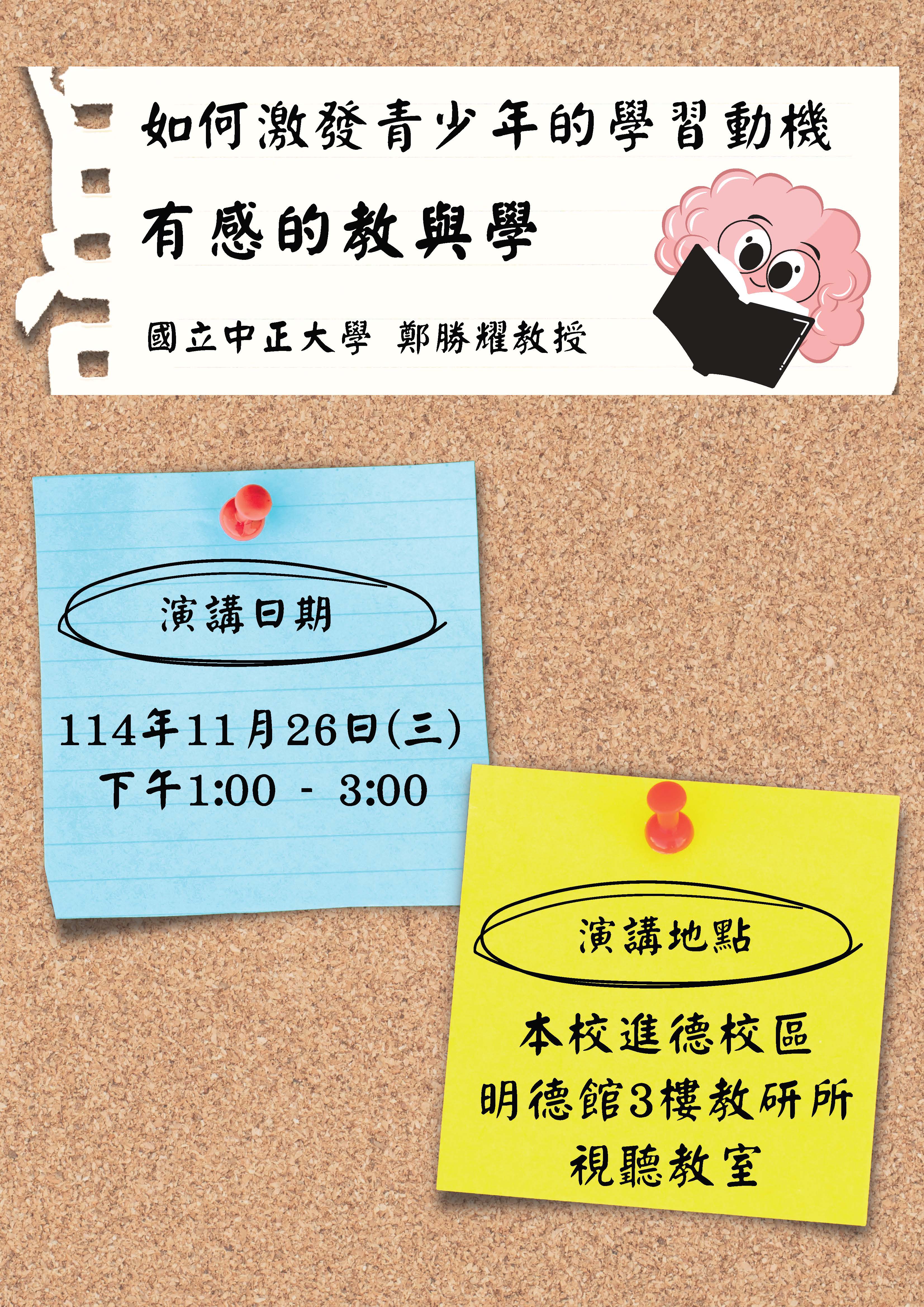 演講題目:如何激發青少年的學習動機:有感的教與學